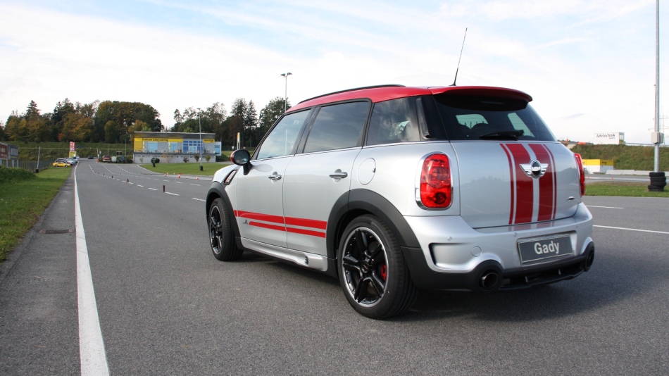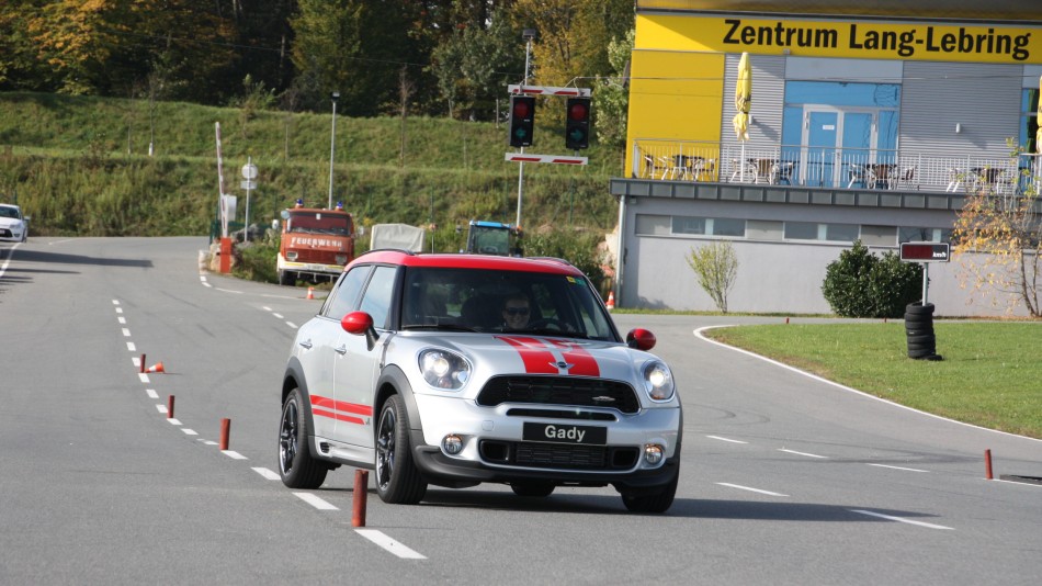 Wie viel Fahrvergnügen bietet der MINI Countryman JCW ALL4? Um das zu testen waren wir am Gelände des ÖAMTC Fahrtechnikzentrums Lang-Lebring. Es galt folgende Übungen zu bewältigen: Slalom, Rundparcours und Offroad. Diese meisterte der MINI bravourös und überzeugte im Sportmodus mit Fahrdynamik, direkter Lenkung und Stabilität. Durch das tiefergelte Sportfahrwerk ist er trotz ALL4 kein Offroader und lies sich nur schwer durchs Gelände manövrieren, jedoch erwies sich das Mitteldifferenzial als gut konzipiertes Helferlein mit viel Potential.