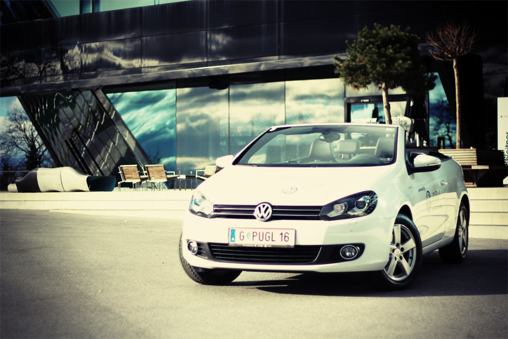 Die ersten Sonnenstrahlen blitzen vom Himmel und ich schwelge in Erinnerungen an mein 1er Golf Cabrio Baujahr 1988 – Verdeck runter und einfach der Sonne entgegen fahren war damals die Devise. Knapp 10 Jahre später hat sich am Wunsch des offen Fahren nicht viel verändert, eventuell ein bisschen der Anspruch an die Technik.