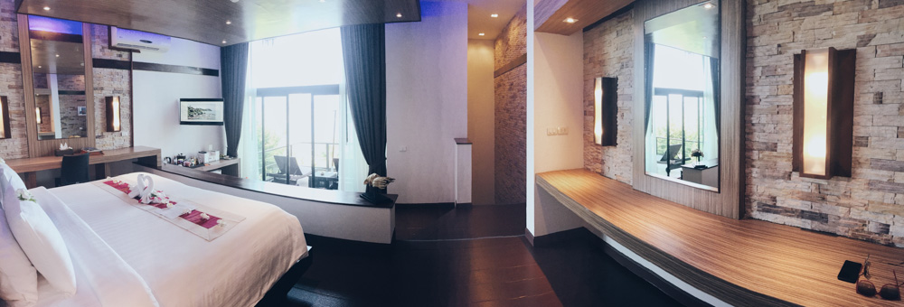 Das Panviman ist in kleinen Bungolow-Suiten entlang der Steilküste verteilt. Die neueren Suiten (meine Unterbringung: Deluxe Jacuzzi Grande) sind wesentlich moderner und auf zwei Stockwerke gebaut. Auf der oberen Ebene finden sich Schlafbereich, Schminktisch, TV, Toilette und Zugang zum Balkon. Die untere Ebene ist ein einziger Spabereich mit Jacuzzi, großzügiger Dusche und Doppelwaschbecken. Grundsätzlich sind alle Suiten mit Meerblick, was wirklich unfassbar schön ist. Der Resortbereich darf nicht befahren werden, dafür stehen kostenlos und rund um die Uhr Golfcars zur Verfügung. Was mich positiv überraschte, ist die flächendeckende und sehr gute WIFI Connection.