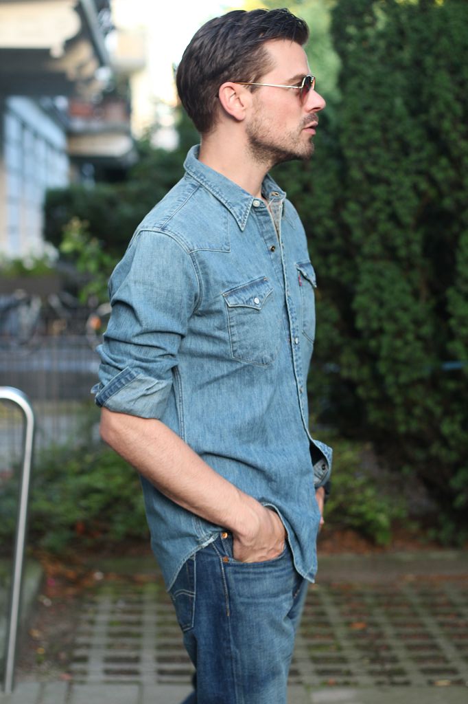 Der zweite Look zeigt ein komplettes Outfit von Modomoto Stylistin Birgit und wie sie Lucas Casual kleiden würde. Ihr Wahl fällt auf eine 501 von Levi's, ein Levi's Hemd und blaue Leder Sneaker.