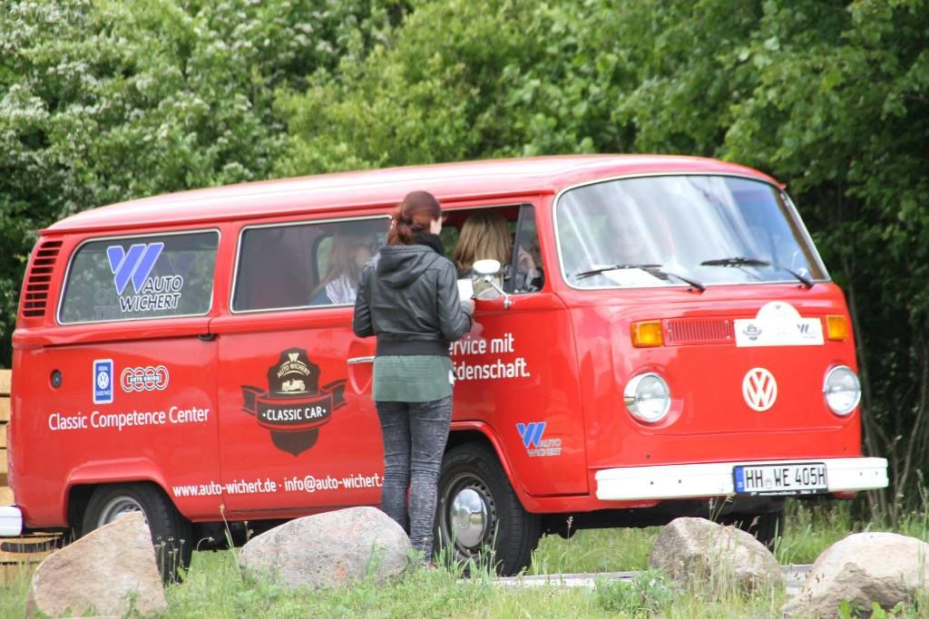 Wir waren mit unserem T2b Bj 1974 in Gruppe 3 und fuhren den 4. Platz ein, was sich in der Gesamtwertung auf Platz 18 widerspiegelte und den Damen-Pokal, als bestes Frauenteam einbrachte. Klingt doch gar nicht so schlecht, für die erste Teilnahme an so einer Rallye und das erste Mal Bulli fahren. Insgesamt gingen 72 Fahrzeuge an den Start mit gut 150 Teilnehmern und dem ältesten Fahrzeug, einem Stoewer R150 Cabrio aus 1934. Nach dem Startschuss um 9.00 Uhr ging es über Nebenstraßen und Dörfern von Hamburgs Osten rund 215 km durch Schleswig-Holstein, mit Stopps u.a. auf Gut Basthorst und dem ADAC Gelände in Bad Oldesloe, zum Zieleinlauf in die Auto Wichert-Welt in der Langenhorner Chaussee. Trotz des durchwachsenen Wetter, von Hagel über Sonnenschein war alles dabei, gab es strahlende Gesichter.